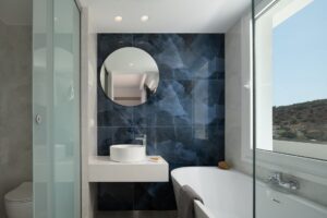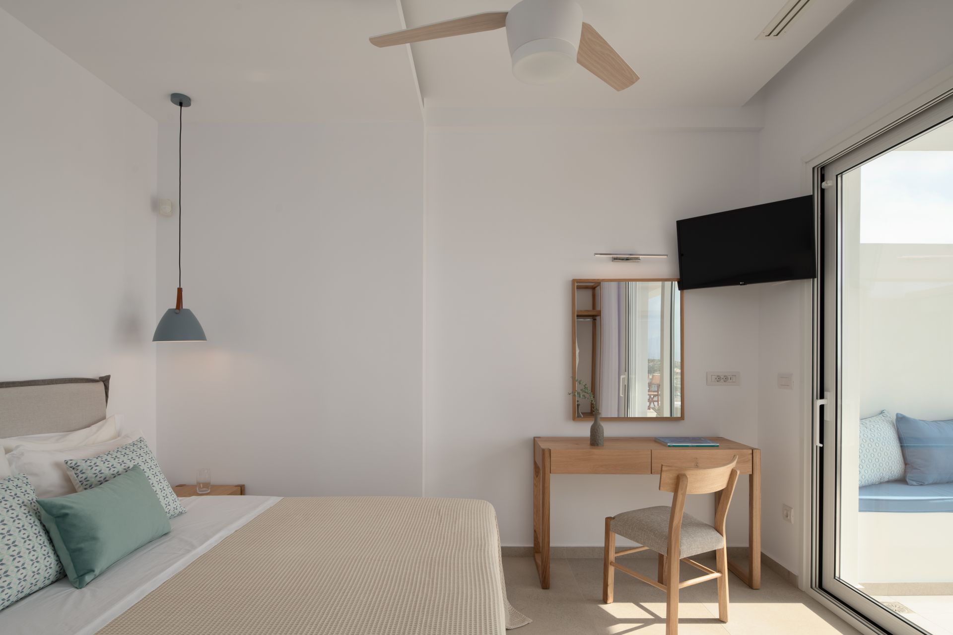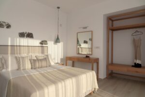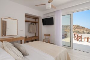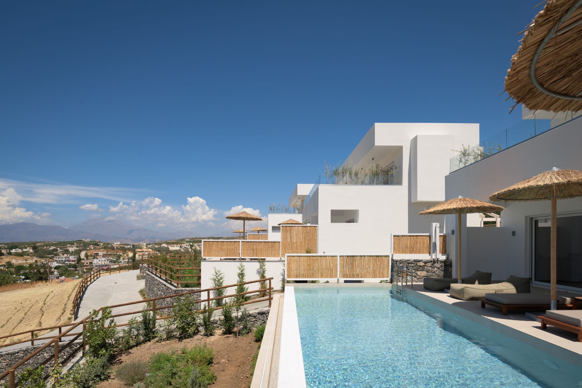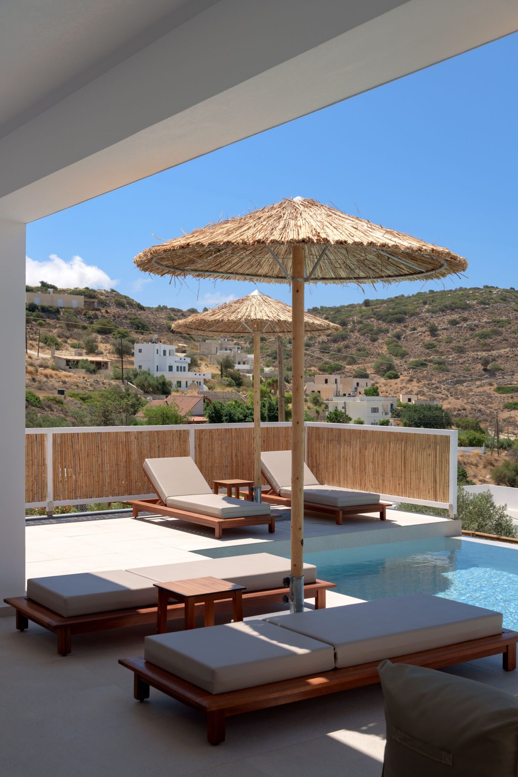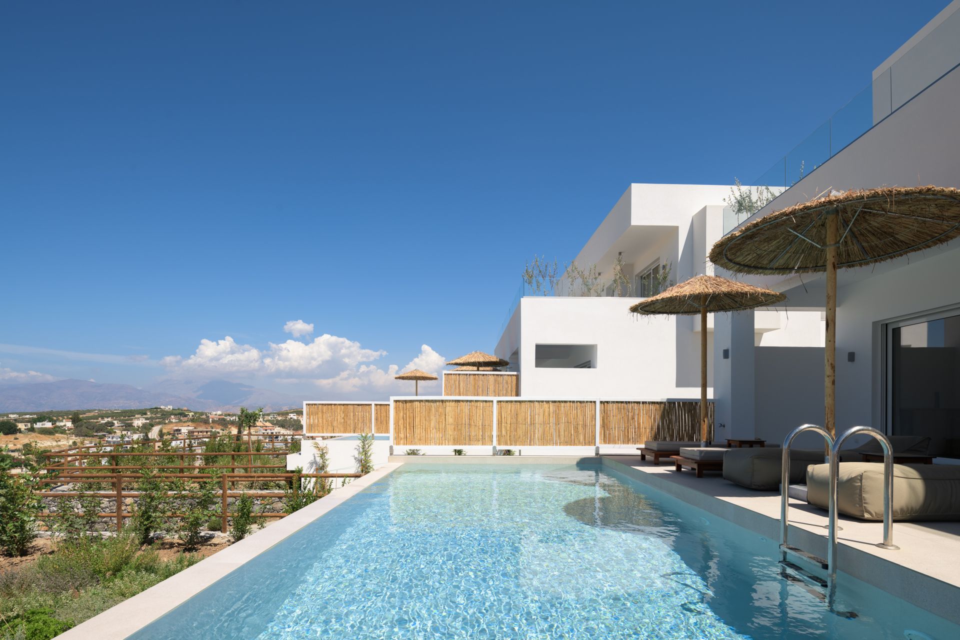 Villa Kalliopi offers magnificent views of Kommos beach, Mount Psiloritis and the traditional settlement of the area, for you to enjoy while relaxing by the pool and in the exquisitely designed outdoor areas. It is 156sq.m., built in 2 levels with excellent quality materials. On the ground floor there is a fully equipped kitchen, a dining room, a bar and a separate bedroom with a double bed and a bathroom with shower. You can enjoy the beautiful view together with an atmospheric fireplace and satellite TV in the living room. On the first floor there are two bedrooms, a bathroom with shower, a bathroom with bathtub and a large terrace with unlimited views. The private pool with dimensions 9m x 3.90m and a depth of 1.40m is ideal for endless moments of relaxation, sunbathing and contact with nature. It also features umbrellas, loungers, bath towels and a beautiful garden with traditional Cretan herbs. The villa also offers private parking.